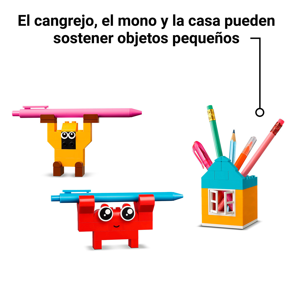 Un surtido de ladrillos para peques: Contiene ideas para dar forma a 10 modelos de construcción rápida, cada uno diseñado para inspirar felicidad, que pueden convertirse en 12 nuevos juguetes y personalizarse aún más para hacer otras creaciones.