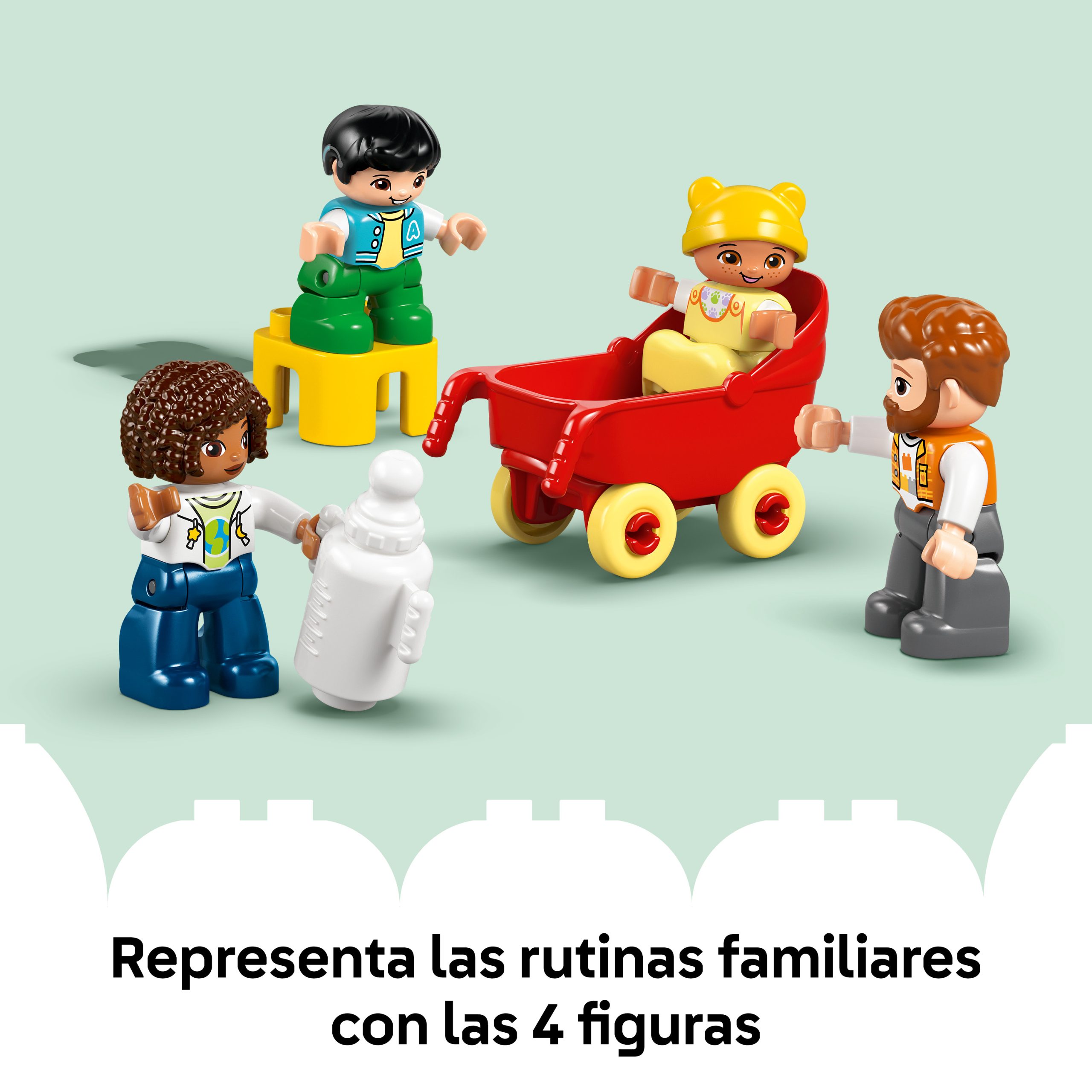 - MOMENTOS EN FAMILIA: Los más jóvenes recrean escenas familiares y aprenden a expresar emociones mientras inventan historias a las que dan vida con las figuras de la mamá, el papá, el preescolar y el recién nacido de este set Mi Ciudad LEGO® DUPLO®