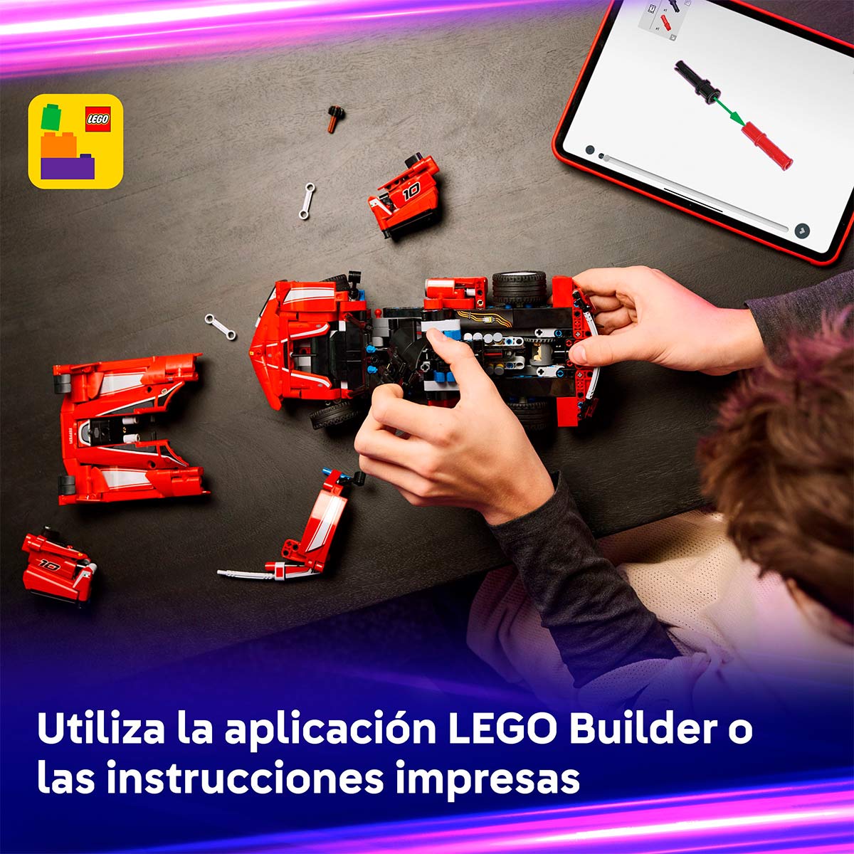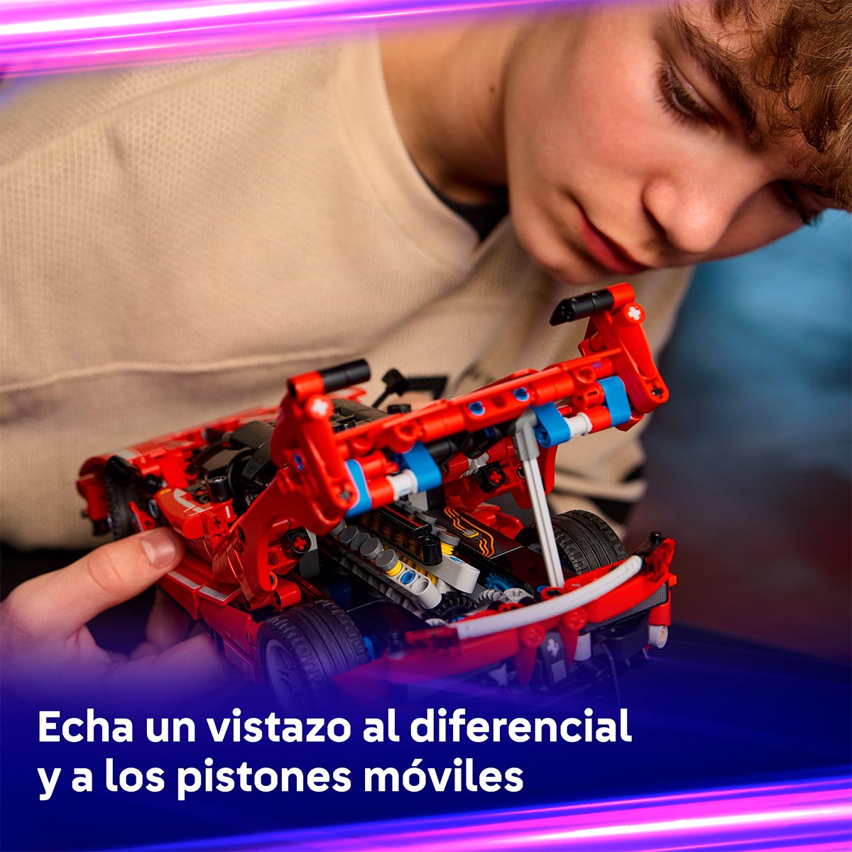 Examina el diferencial, de gran realismo, y observa cómo se mueven los pistones. Luego levanta la cubierta para ver el motor V12. Después de explorar las funciones, los peques pueden exponer su coche de juguete LEGO Ferrari para admirar su emblemático color rojo. Este set es un divertido regalo para niños y niñas a partir de 10 años o cualquier apasionado de Ferrari y los coches de lujo.