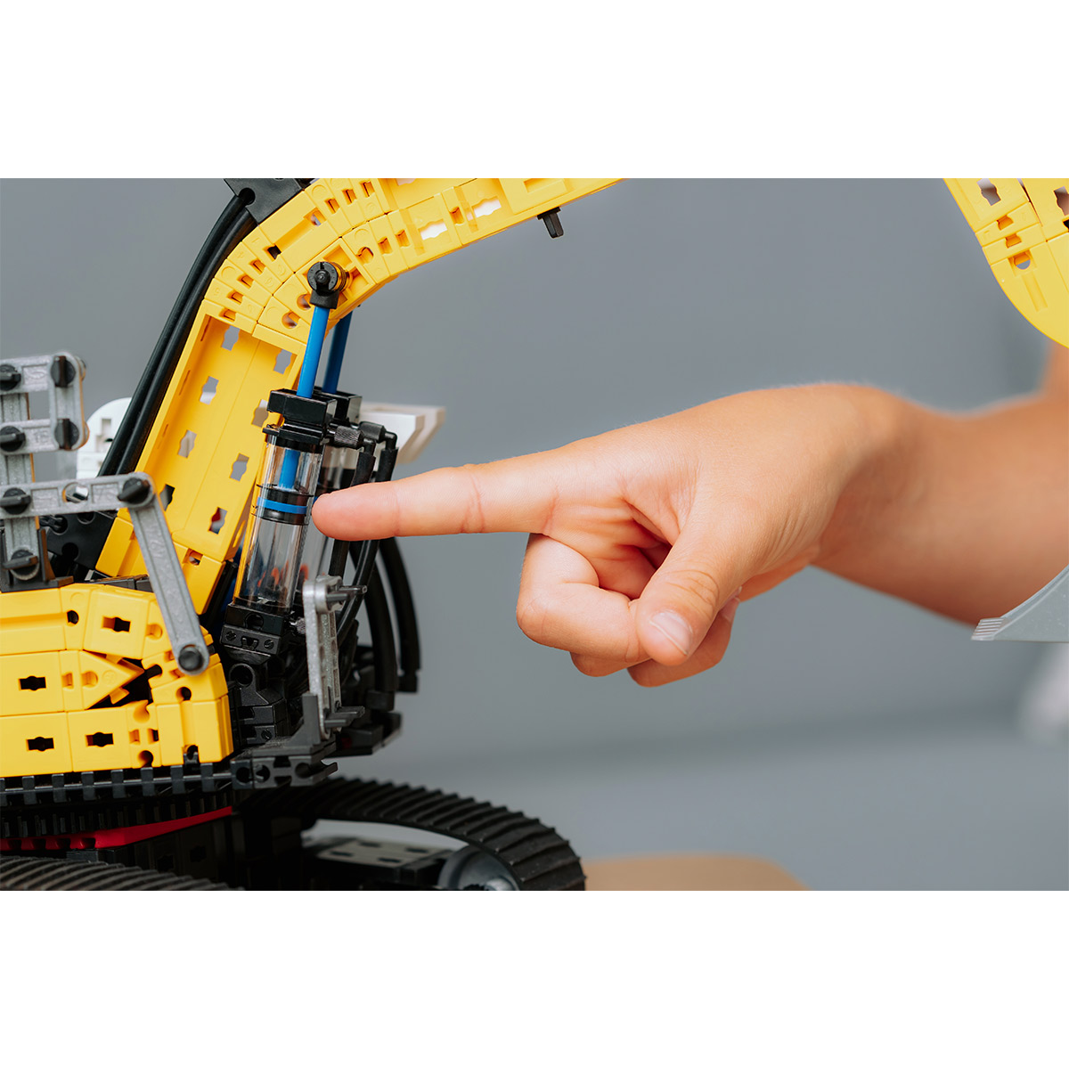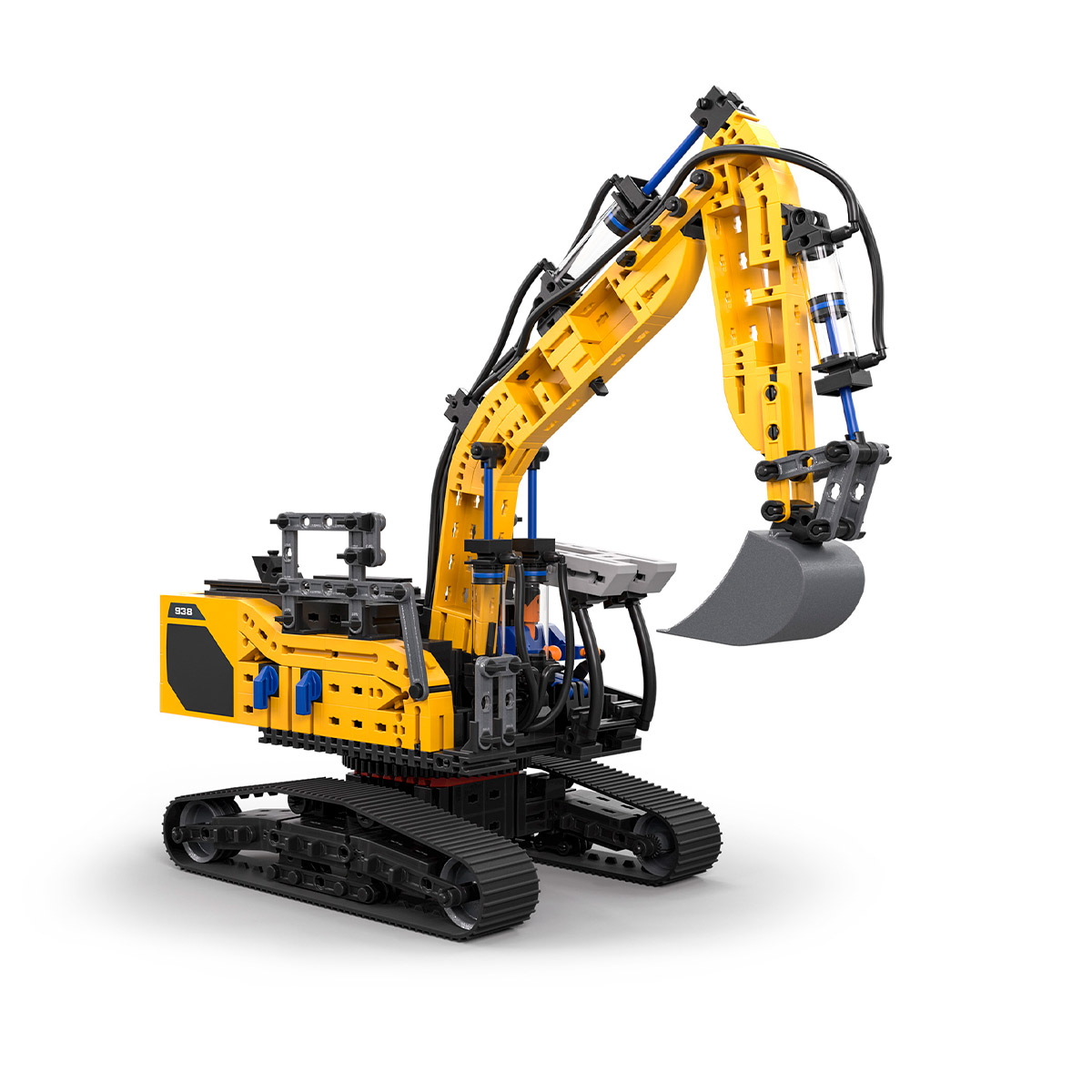 La excavadora Liebherr R 938 de Fischertechnik combina un diseño detallado con una tecnología neumática realista