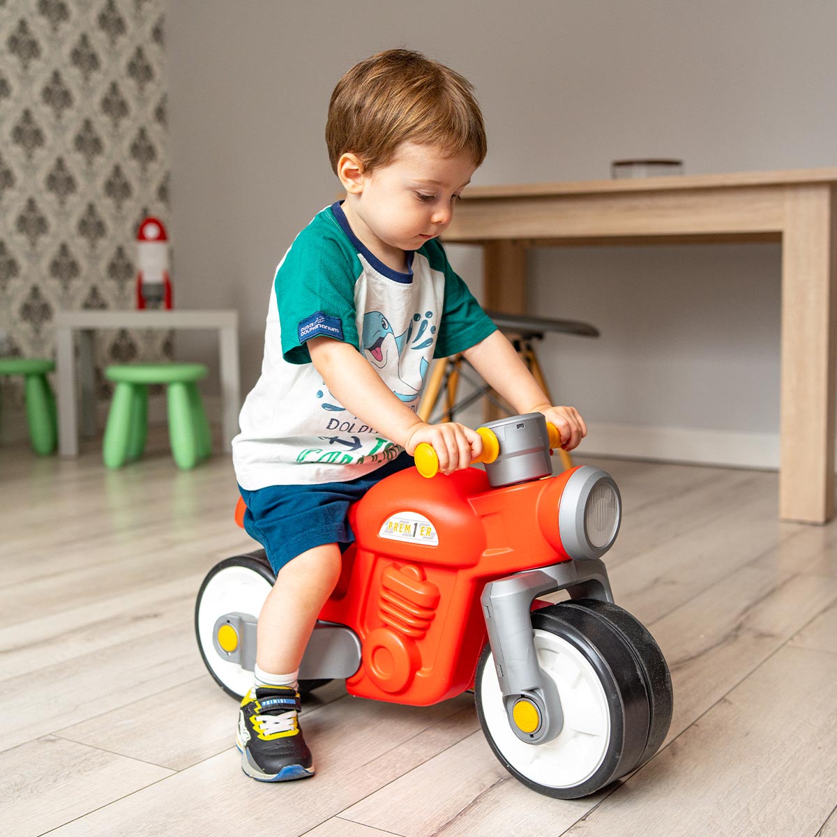 Gracias a sus ruedas anchas, silenciosas y antideslizantes, esta moto ofrece una gran estabilidad, ayudando a los niños a desarrollar su equilibrio y coordinación motora de forma segura. Además, sus ruedas no dejan marcas en el suelo, por lo que es perfecta tanto para uso en interiores como en exteriores.