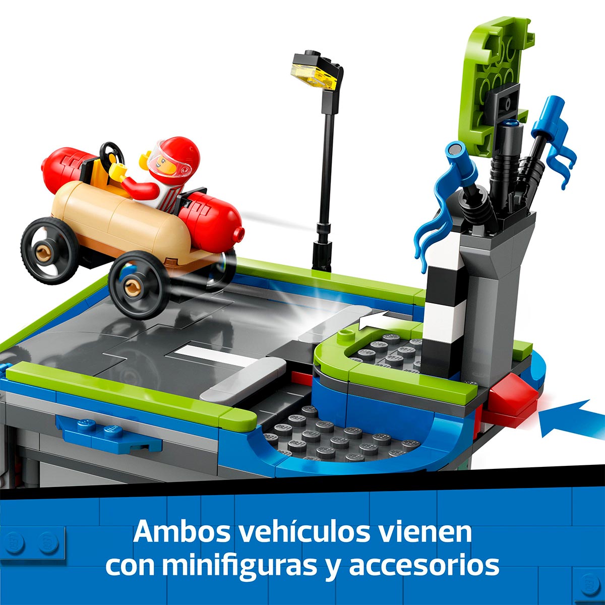¡Los juegos de los peques toman impulso con el set LEGO City Sin Límites: Rampa de Aceleración para Coches de Carreras (60460)! Este dinámico set con coches de carreras de juguete para niños y niñas a partir de 6 años incluye una altísima rampa y 2 extravagantes autos locos. Tu peque coloca los coches con forma de perrito caliente de juguete e inodoro en lo alto de la rampa y acciona una palanca para lanzarlos a gran velocidad desde la línea de salida. Con sus 4 minifiguras LEGO (entre ellas una vendedora de perritos calientes y un fontanero), este set fomenta el juego imaginativo.