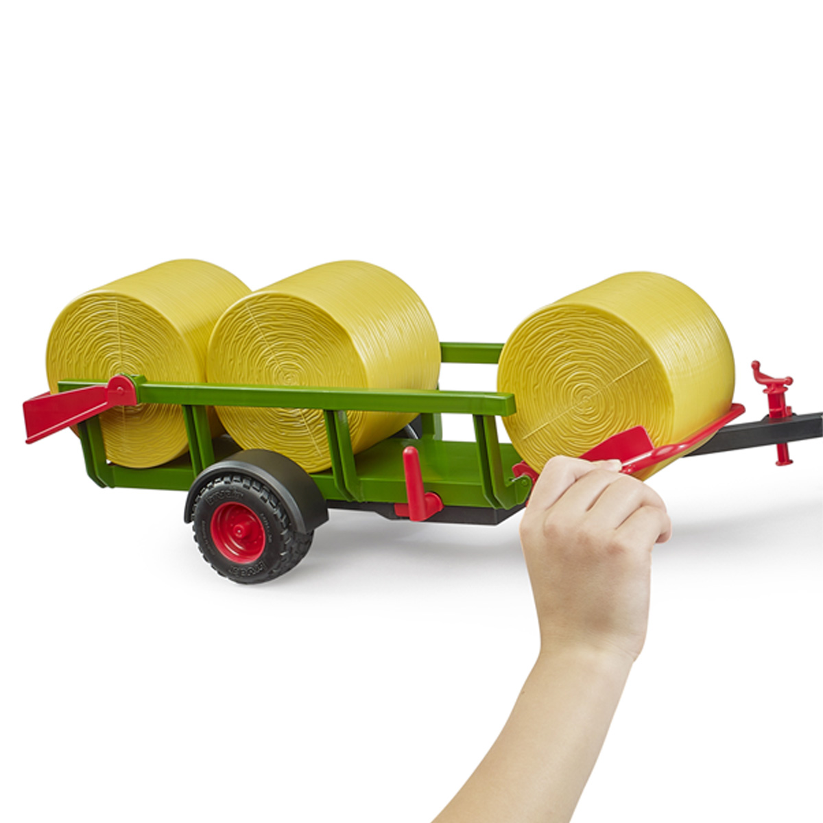 Como elementos de la amplia gama de productos de BRUDER en la categoría Agricultura, los numerosos tractores de las series 1000 a 3000 y las enfardadoras son compatibles con el acoplamiento de remolque típico de BRUDER.