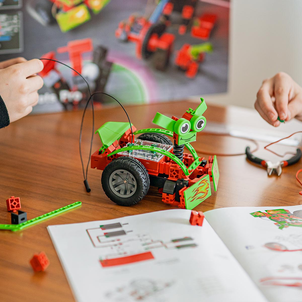 El kit de iniciación ideal para niños a partir de ocho años. Con los sensores y actuadores incluidos, los jóvenes desarrolladores pueden construir, programar y controlar 12 modelos. Desde un robot conductor con detección de obstáculos y un carrusel parpadeante hasta el control de la temperatura con un ventilador y un sistema de alarma: ¡programar se convierte aquí en un juego de niños!