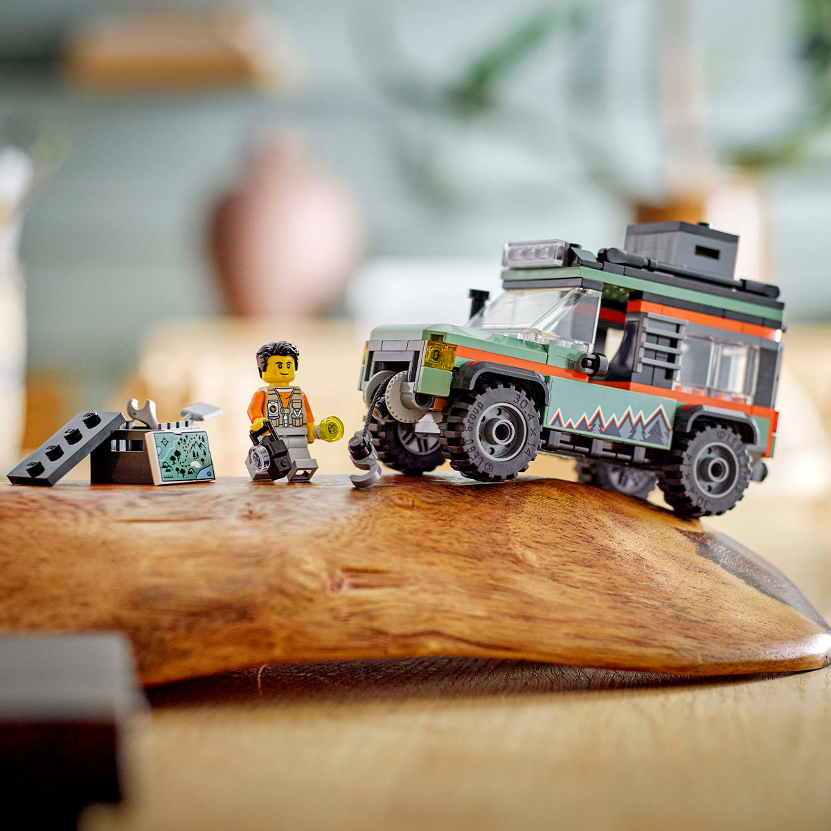 • Set con un vehículo lleno de accesorios para minifiguras LEGO®: Cuenta con una cámara de juguete, una botella de agua, una linterna, un mapa, una brújula, unos prismáticos, herramientas y un botiquín para jugar a recrear situaciones de la vida real