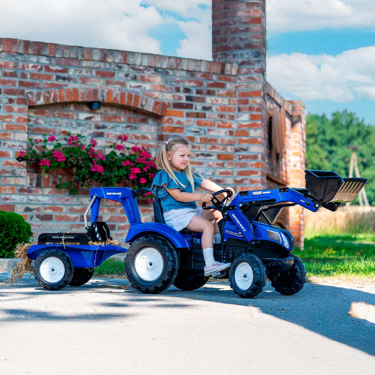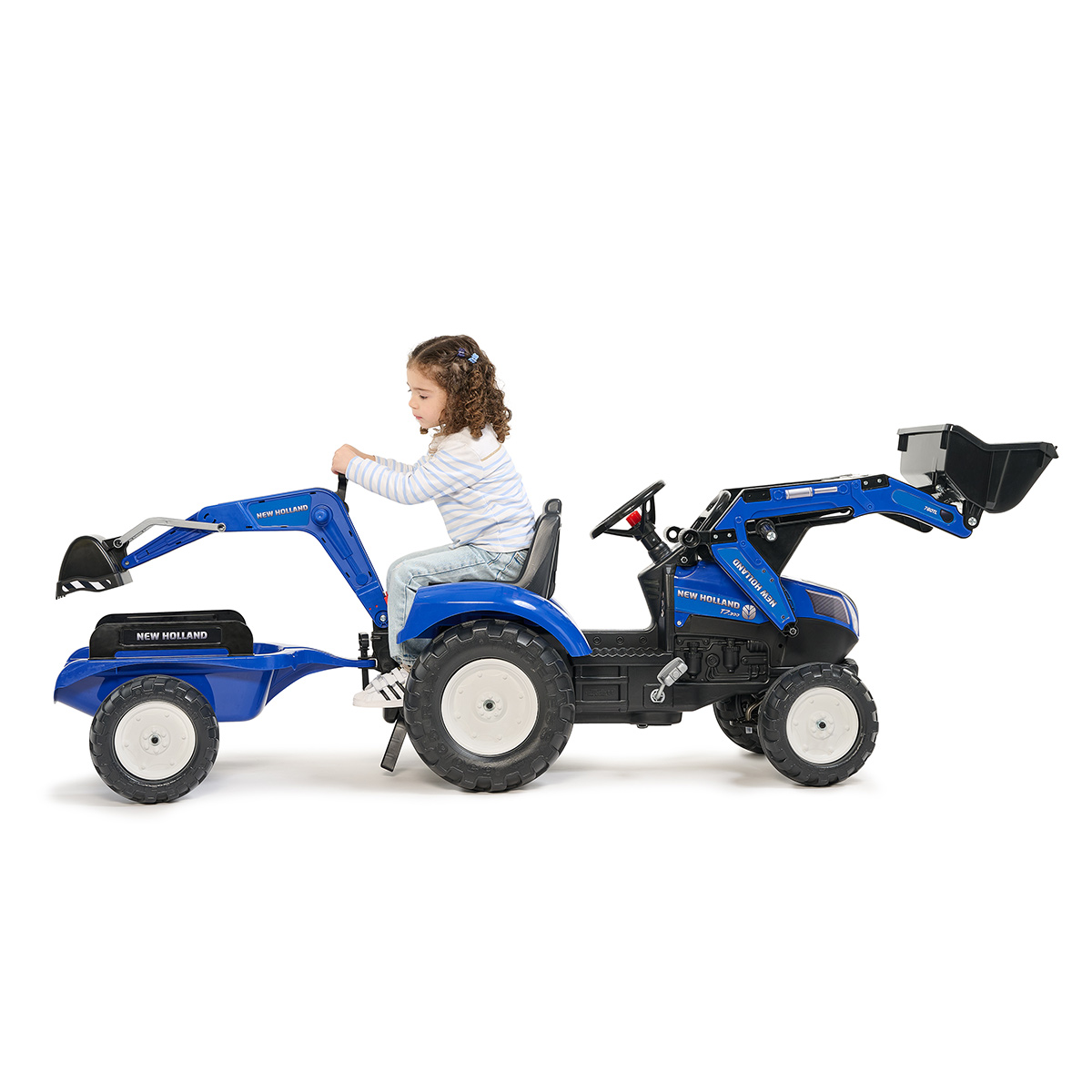Tractor de Pedales New Holland T8 con Remolque, Retroexcavadora y Pala | Falk