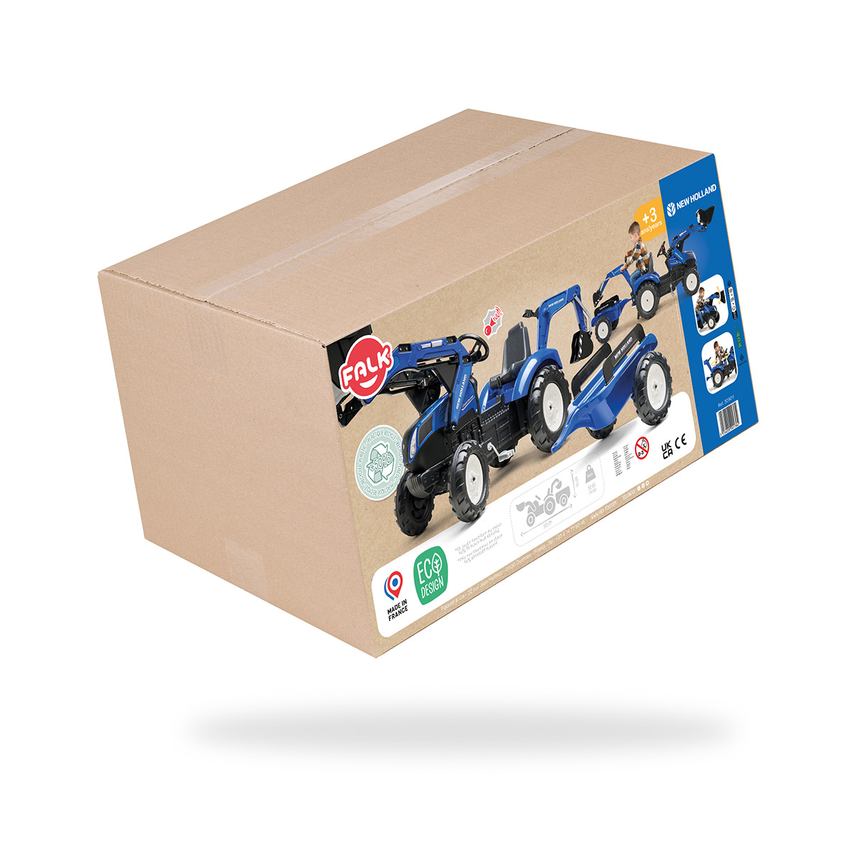 Especialmente diseñado para los pequeños aventureros de 3 a 8 años, este tractor de pedales New Holland es una réplica realista de un auténtico tractor de obra.
