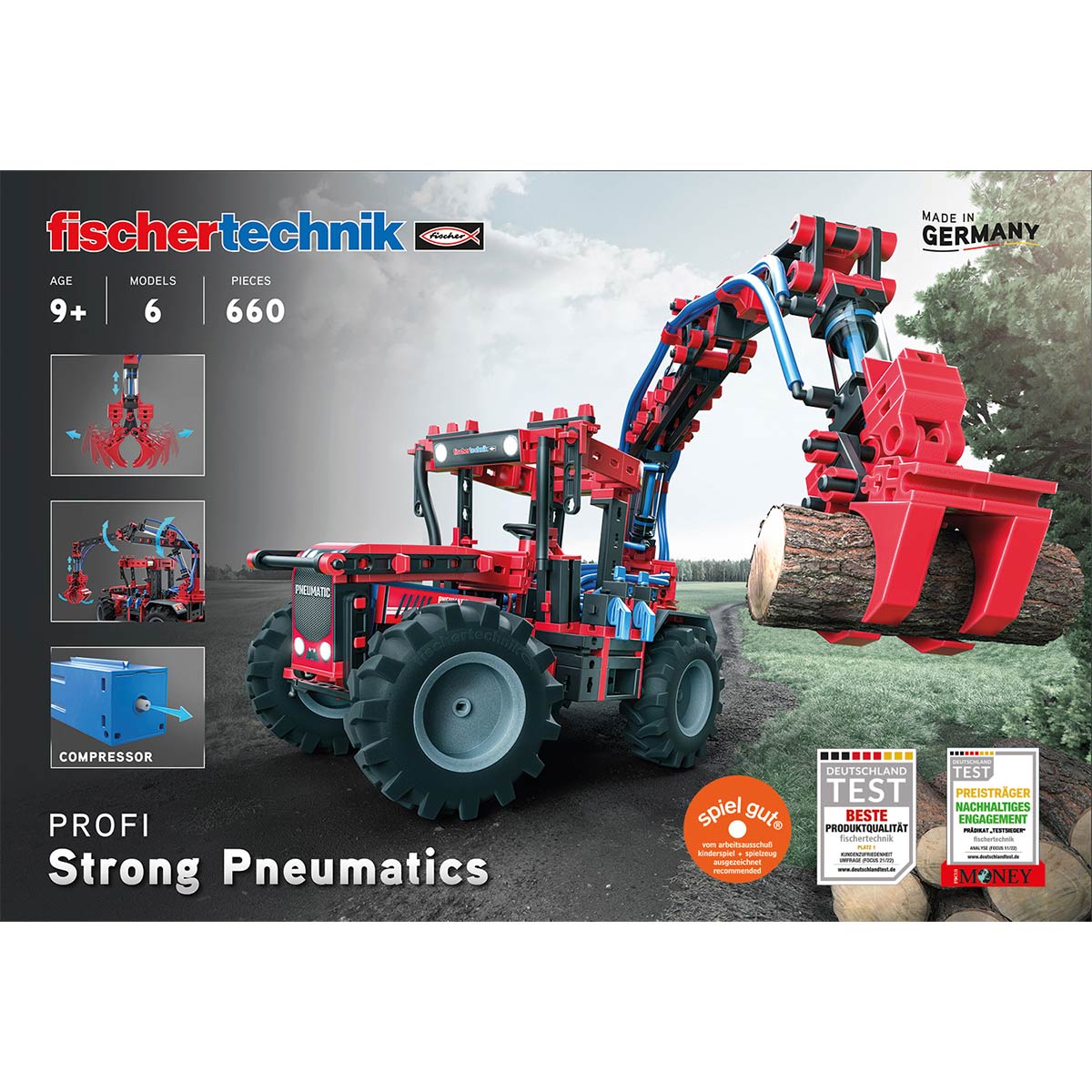 La neumática es una tecnología indispensable en la industria actual. Su sistema de aire comprimido, robusto y resistente a todo tipo de condiciones ambientales, junto con un combustible ilimitado como es el aire, garantiza un funcionamiento fiable a largo plazo. Con el Fischertechnik Strong Pneumatics, los niños a partir de 9 años pueden iniciarse en este importante campo de la ingeniería de forma práctica y divertida.